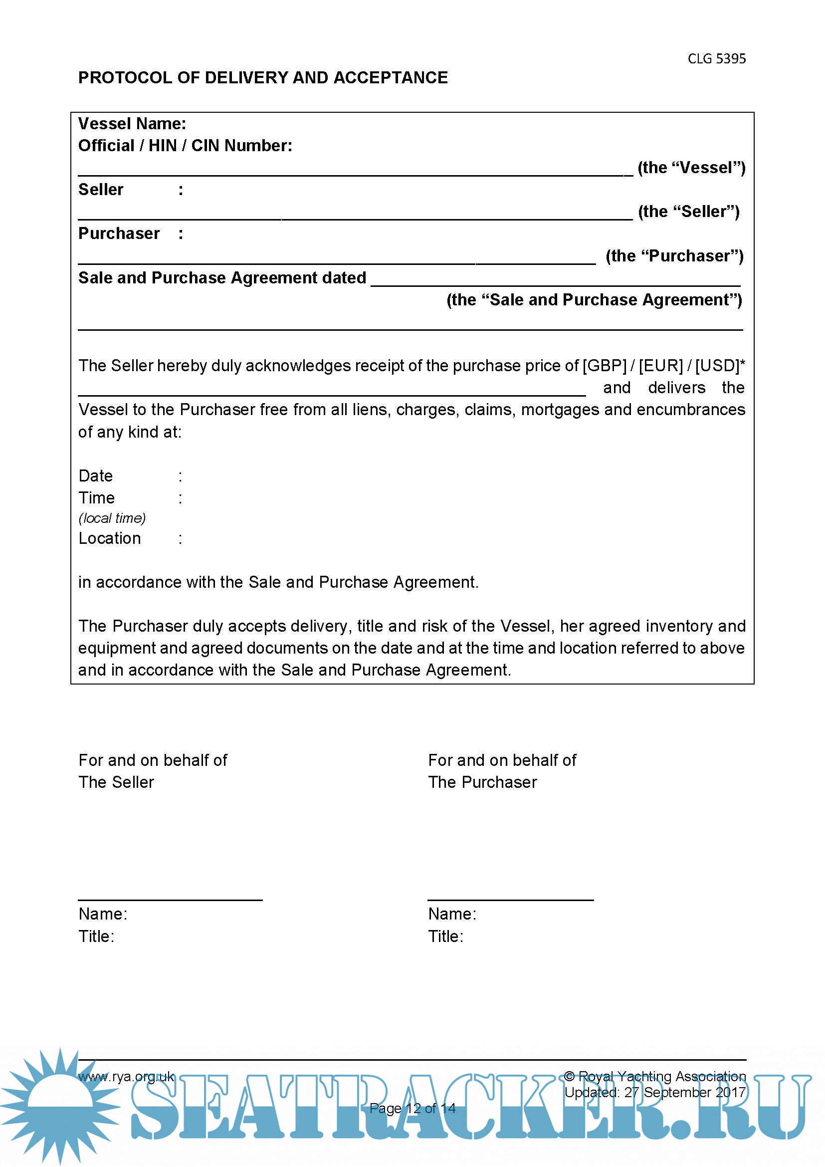 1. Agreement for the Sale and Purchase of a Second-Hand Boat, 2017 - Royal Yachting Association - 14 pages