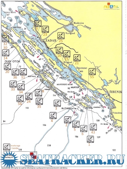 Официальные концессионные рейдовые стоянки на буях в Хорватии (2013)