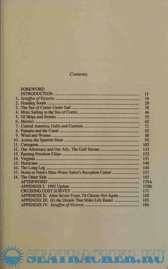Year: 1992 Language: english Author: Lin and Larry Pardey Genre: Guide Publisher: Sheridan House Edition: First ISBN: 0-924486-36-8 Format: PDF Quality: Scanned pages Pages count: 200 Description: The cruising tale is full of the sights and sounds, the fragrances and native customs of foreign lands, especially Central American and the Caribbean. It is a story of a leisurely sail through the Gulf of Cortez and on through Panama Canal to the Azores and England. Cruising in Seraffyn is also a carefully thought out guide to living aboard a small boat, with fun and economy as the guide principles. Four appendices provide data that is vital for anyone comtemplating long distance cruising