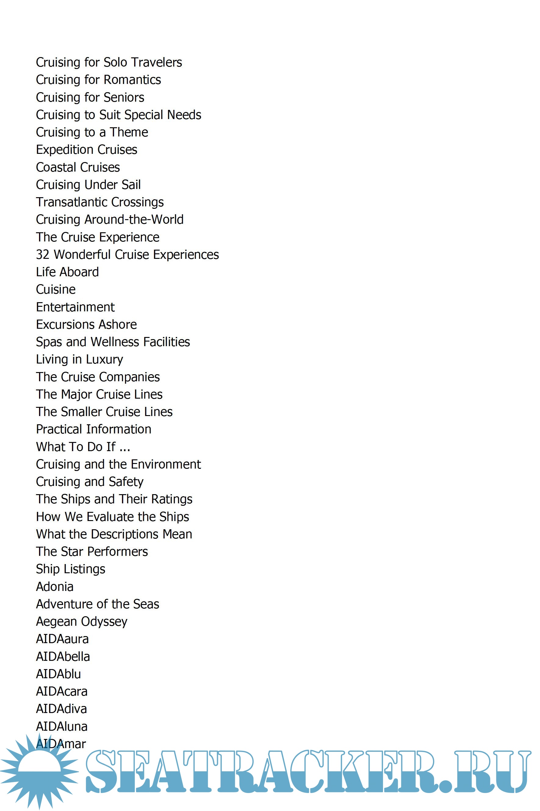 Meticulously updated every year by cruise expert Douglas Ward, it is divided into two main parts: the first helps you work out what you're looking for in a cruise holiday and how to find it; the lively text and colour photographs describe every aspect of life on board, including safety, the highs and lows of the cruise experience and how to save money. The second part contains unbiased reviews and fascinating detail of almost 300 ocean-going cruise vessels, and grades them on service, food, entertainment and facilities, using an internationally recognised ratings system.