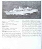 Description: An update of the author's earlier book "Passenger Liners of the World Since 1893," this volume appears to include all of the information from that book, plus 60 additional pages of info about more recent ships. Descriptions of each ship include the name of builder, date of completion, dimensions, weight, engine type, decks & passenger accommodations, speeds, maiden voyage, bulkheads and screws, along with a black & white photo.
