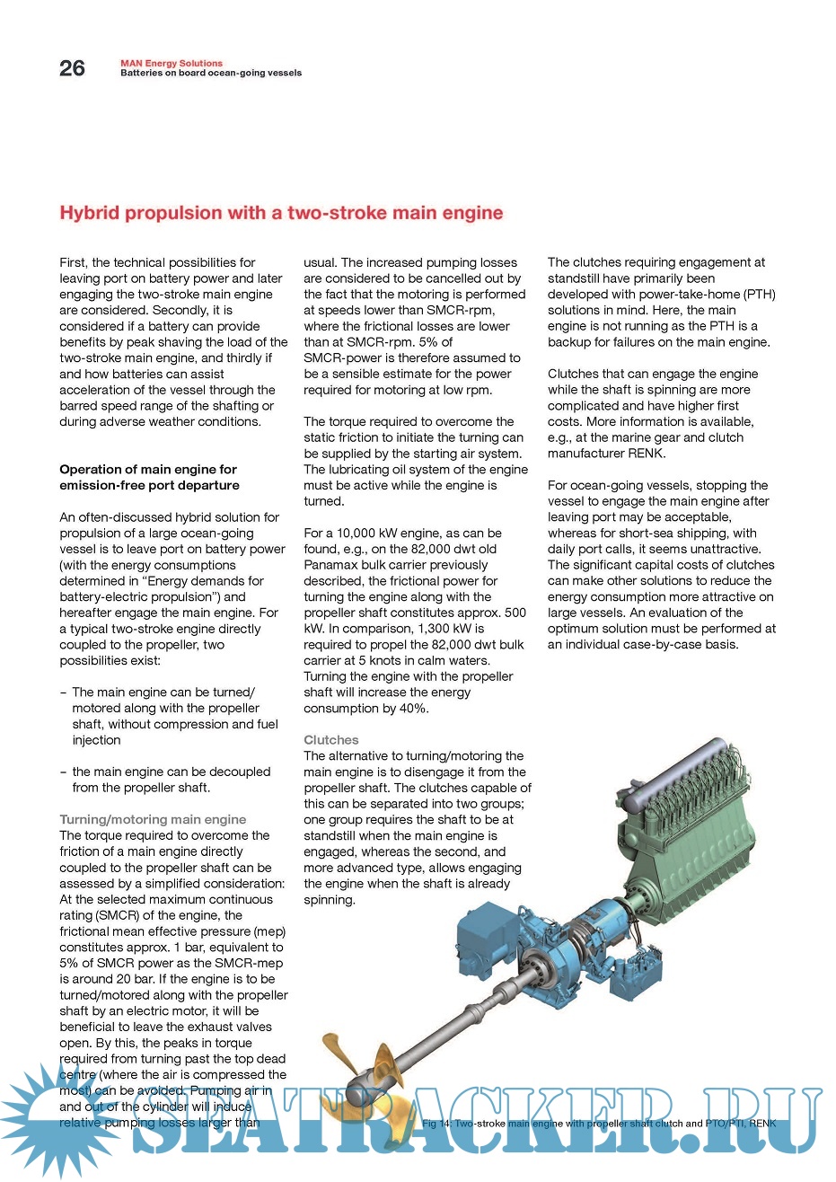 Year: 2019 Language: english Author: MAN Energy Solutions Genre: Handbook Publisher: MAN Format: PDF Quality: eBook Pages count: 36 Description: The scope of this paper is to exemplify the energy consumption and power needs of large ocean-going merchant vessels and to discuss the potential applications of batteries within this field of the maritime industry. A field traditionally dominated by the low-speed two-stroke engine. In “Battery technology“, the technology is explained, including the auxiliary systems required to support the batteries. Considerations on the weight, volume, and cost of a maritime battery system of today and tomorrow are included. The energy consumption for various operations and routes of large ocean-going vessels is considered in “Energy demands for battery-electric propulsion“, along with the potential for covering the electric hotel load by batteries while the vessel is at quay. .