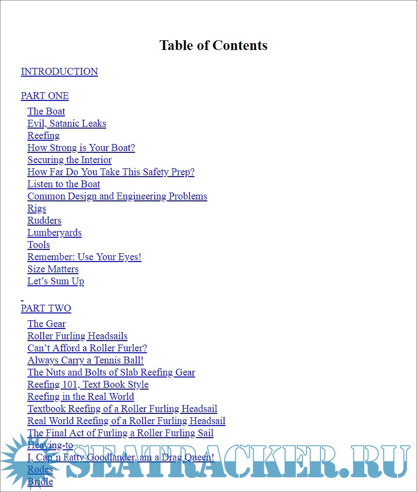 Year: 2016 Language: english Author: Gary M. Goodlander Genre: Manual Publisher: Self Published ISBN: 1533352720 Format: Other Quality: eBook Pages count: 338 Description: As author remarks "Storms exist. Pretending they don’t or that they will never hit you is both stupid and childish". The purpose of this book is not to encourage ayone to sail into storms, but rather to assist reasonably experienced sailors to survive storms with minimal damage to vessel and crew. Since not all storms can be avoided, the sailor must be properly prepared, instead of fear them. There’s only one way to obtain this offshore calm and self-confidence. It is called seamanship, or common sense based upon experience. It cannot be purchased. Seamanship must be earned over time, and the more seamanship one has, the less fear suffers. A little fear can be useful, but too much can paralyze. The base idea of the book is that a good boat is obviously better than a bad one, but there is no direct relationship between cost and safety. A small, storm-proofed boat can be safer than a large, expensive yacht. In this book the author widely dispenses tips, tricks and rules to make safer the existing boat. Advices covers everything the offshore sailor needs to know about vessel preparation, reducing sail, reefing, towing slowing drogues, deploying a parachute-type sea anchor, from where to step into a life raft, why deploy fenders, what things one must avoid, and ultimately, hanging to a Jordan Series Drogue. Additional info: Folder contains both AZW3 and epub version of the book