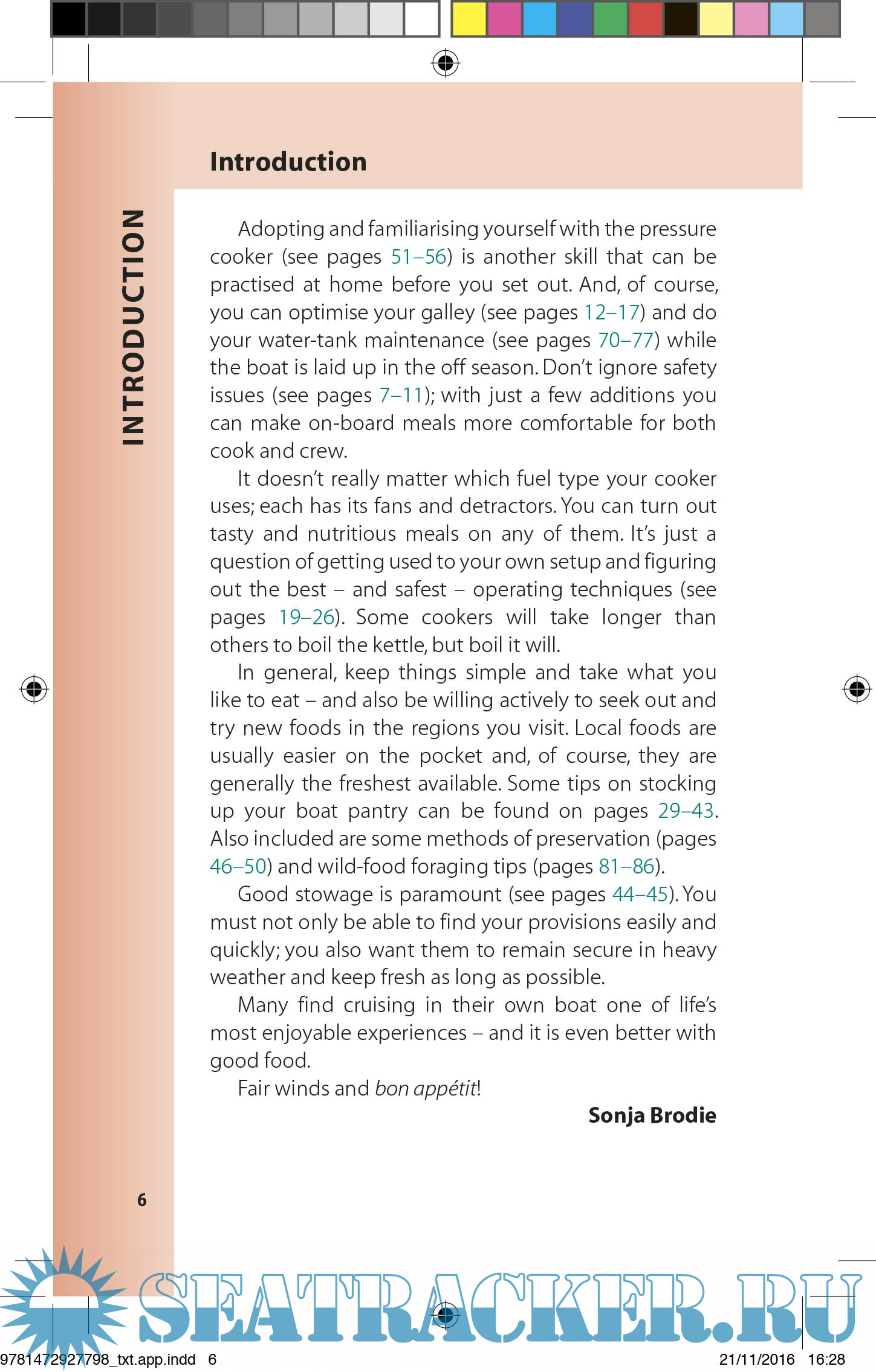 Year: 2017 Language: english Author: Sonja Brodie Genre: Handbook Publisher: Bloomsbury Publishing Plc ISBN: 978-1-4729-4450-4 Format: PDF Quality: eBook Pages count: 144 Description: Eating at sea does not have to be a drudge-as many a salt knows, eating pre-packaged breakfast, lunch, and dinner quickly becomes boring. This handy pocket-sized galley reference is packed with invaluable advice for feeding a hungry crew for a weekend, a week, a month or even a long-term cruise or ocean passage. Brodie shows how to prepare and cook interesting, varied, and delicious meals with the minimum of space, equipment, and--most importantly--hassle. A third of the book contains simple but delicious recipe ideas, and the entire book is packed with tips, tricks, and guidance from someone who learned all the secrets (and the pitfalls) during a two-year cruise with only a single paraffin burner. Topics include: cooking while underway; cooking in harbor; food storage tips; equipping or modifying your galley for weekend or long-term cruising; provisioning and planning for coastal cruises or ocean passages; preparing freshly caught fish; baking bread aboard; using a pressure cooker; speed cooking; different foods available in different climates; and much, much more. PS See my other releases in the "Yachting, sailing, boating" topic: https://seatracker.me/tracker.p...id=54420#results