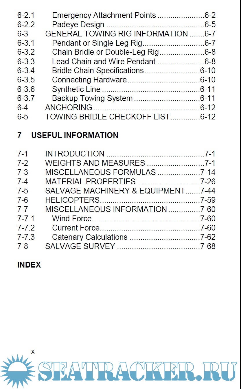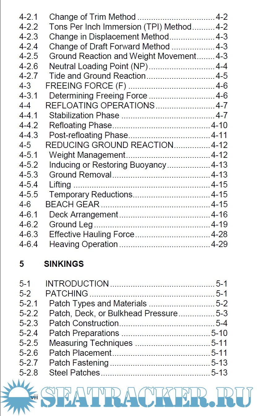 Year: 2021 Language: english Author: US Navy - Naval Sea System Command Genre: Handbook Publisher: US Navy - Naval Sea System Command Edition: 2nd Format: PDF Quality: eBook Pages count: 278 Description: This handbook is a manual designed as a ready-reference to be taken along to the salvage site, conveniently sized to fit in the hip pocket. It is designed to provide to on-scene salvage personnel access to the extensive library of marine casualty response know-how: the “hard-earned and sometimes blood-stained” knowledge and lessons-learned from decades of U.S Navy response to all types of commercial and military “ships in distress” around the world, and salvage operations of all sizes and scopes. Commercial and military marine salvors, as well as operators of both commercial and recreational vessels, find this ready-reference useful. Naval architects, marine engineers and other maritime professions rely on it as a handy diagnostic, repair, design and engineering reference. The book deals with casualties that may suffer structural damage and free communication between the ship and the sea, pollution due to bunker or cargo operations, fire on board, flloding, sinking. In each sistuation the salvor must choose priority and take immediate action. The publication details corrective procedures for each situation.