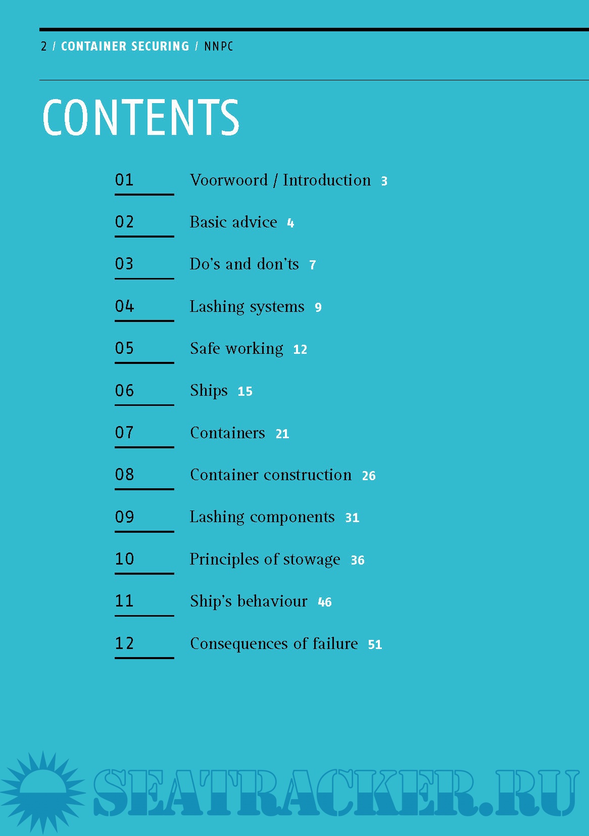 Year: 201x Language: english Author: NNPC Genre: Guide Format: PDF Quality: eBook Pages count: 56 Description: An improved policy on loss prevention is one of the objectives NNPC has decided to aim for. This includes providing better information to members about specific loss prevention topics in order to avoid claims. The reinsurers with whom NNPC has a close working relationship have published a great deal of information on loss prevention that is also relevant to NNPC members. Having acquired the rights from The Standard P&I Club, NNPC is now in a position to offer these publications to its members. NNPC Master’s Guide is all about Container Securing. It highlights the do’s and don’ts of container securing and offers tips and advice which will enable you to reduce or prevent loss.