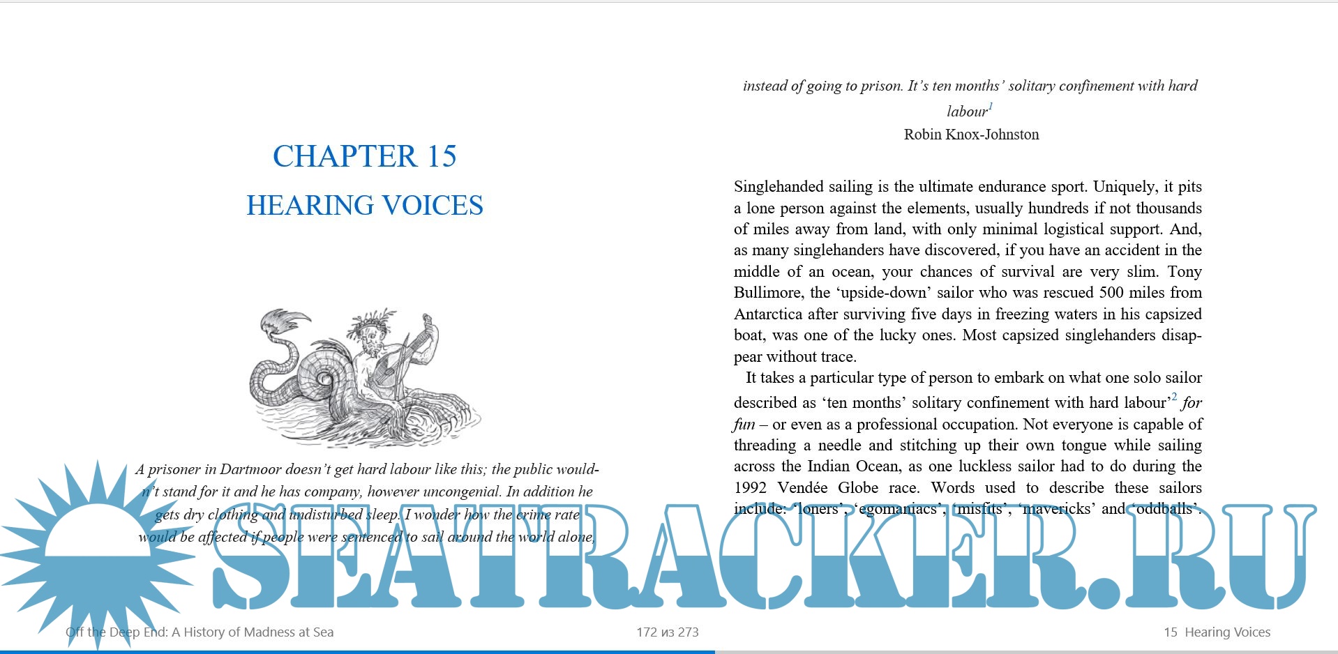 Year: 2017 Language: english Author: Compton N. Publisher: Adlard Coles Nautical ISBN: 978-1472941107 Format: EPUB Quality: eBook Pages count: 288 Description: Confined in a small space for months on end, subject to ship's discipline and living on limited food supplies, many sailors of old lost their minds--and no wonder. Many still do. The result in some instances was bloodthirsty mutinies, such as the whaleboat Sharon whose captain was butchered and fed to the ship's pigs in a crazed attack in the Pacific. Or mob violence, such as the 147 survivors on the raft of the Medusa, who slaughtered each other in a two-week orgy of violence. So serious was the problem that the Royal Navy's own physician claimed sailors were seven times more likely to go mad than the rest of the population. Historic figures such as Christopher Columbus, George Vancouver, Fletcher Christian (leader of the munity of the Bounty), and Robert FitzRoy (founder of the Met Office) have all had their sanity questioned. More recently, sailors in today's round-the-world races often experience disturbing hallucinations, including seeing elephants floating in the sea and strangers taking the helm, or suffer complete psychological breakdown, like Donald Crowhurst. Others become hypnotized by the sea and jump to their deaths. Off the Deep End looks at the sea's physical character, how it confuses our senses and makes rational thought difficult. It explores the long history of madness at sea and how that is echoed in many of today's yacht races. It looks at the often-marginal behavior of sailors living both figuratively and literally outside society's usual rules. And it also looks at the sea's power to heal, as well as cause, madness.