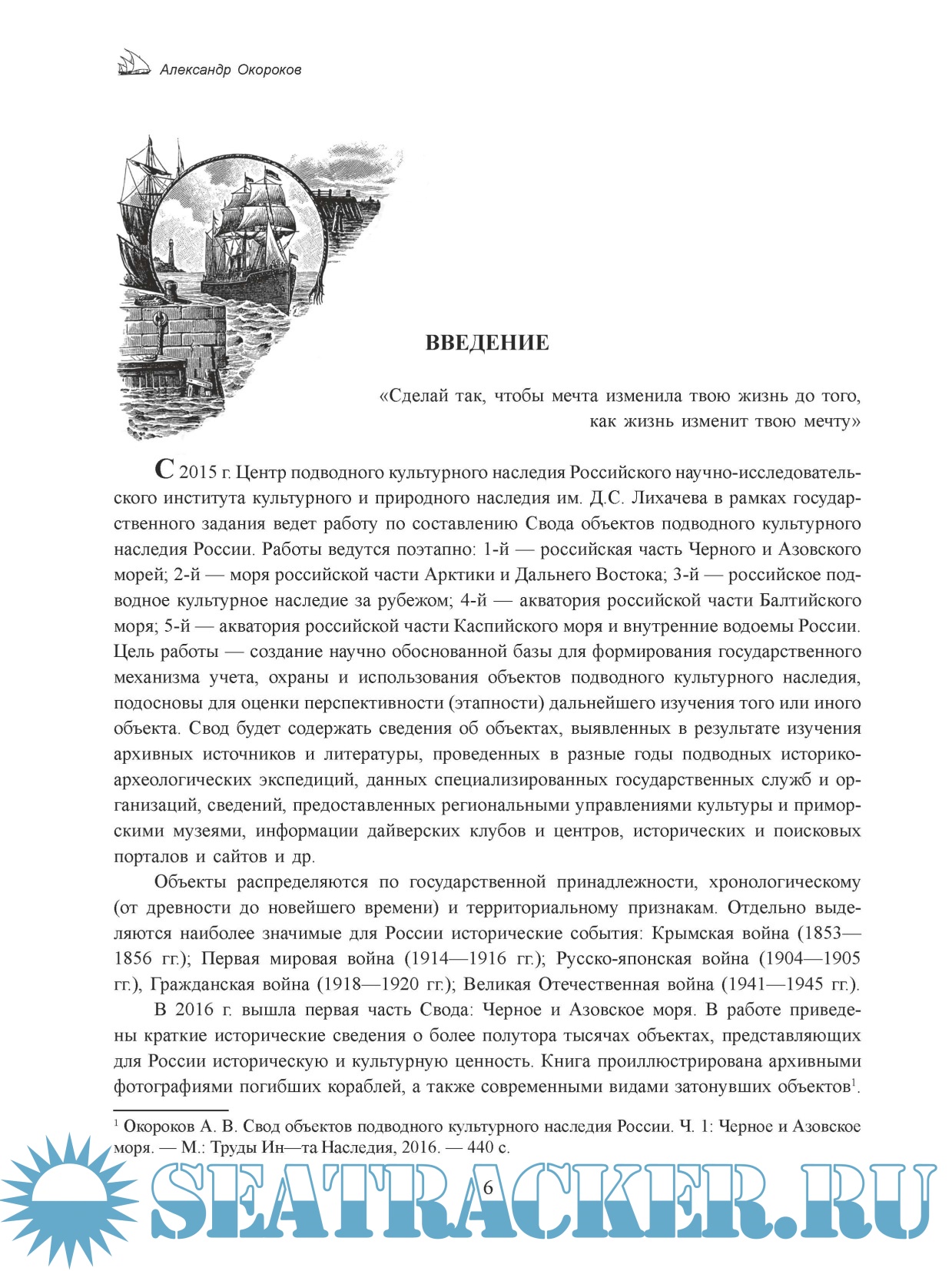 Описание: Данная работа представляет собой издание научно-справочного характера, призванное дать общее представление об объектах подводного культурного наследия в границах территориальных вод России. Основой Свода являются сведения, полученные при изучении архивных источников и литературы, отчётов подводных историко-археологических экспедиций, данных специализированных государственных служб и организаций, материалов региональных управлений культуры и приморских музеев, информации дайверских клубов и центров, исторических и поисковых порталов и сайтов и др. Издание поможет в формировании оценки перспективности дальнейшего изучения конкретного объекта, реконструкции исторической обстановки и исторических событий.