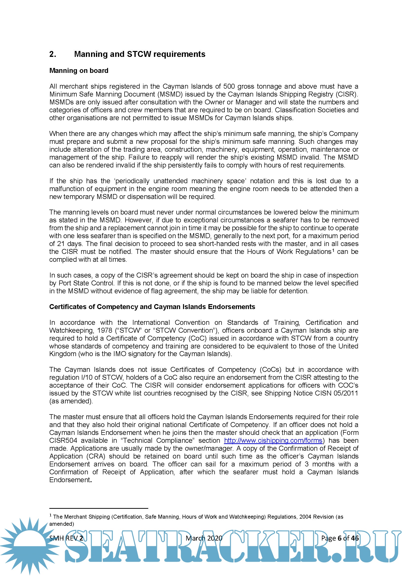 Please read this document as it should answer most of your questions regarding Cayman Islands Merchant Shipping Laws and Regulations and the administrative processes required in running a Cayman Islands ship. These may differ from the procedures that you are familiar with on ships of other flags and this guide attempts to provide simple guidance on the key areas. It should be noted, however, that this document contains advice and masters and Owners should always be aware that the onus is on them to comply with the requirements of the Conventions, Cayman Islands legislation and any local legislation in the areas you are operating (for example the United States, European Union).