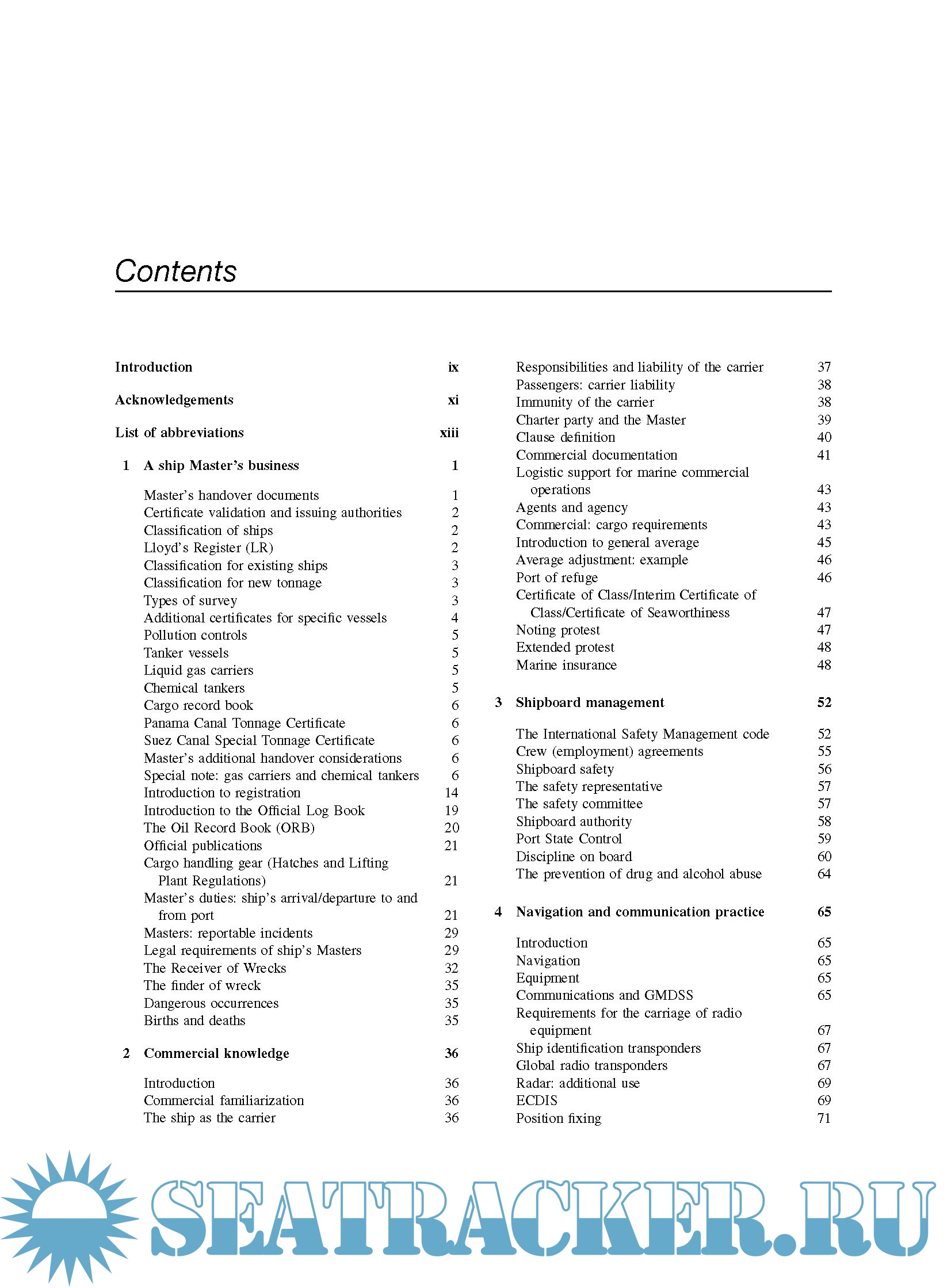 · All aspects of shipboard management are discussed, with special emphasis placed on health and safety.