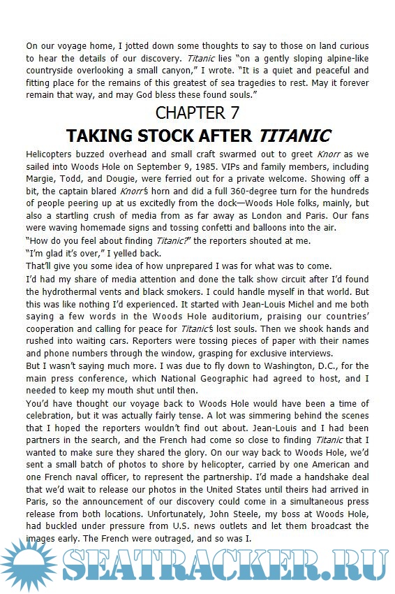 Description: The legendary explorer of Titanic and Lusitania looks back on his life behind his famous exploits and unveils a major new discovery on the occasion of the 35th anniversary of the Titanic find.