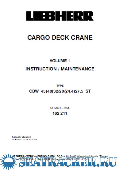 Liebherr Cargo deck crane CBW 40 / 29,5 ST (Instruction manual + Technical information) [2000, PDF]