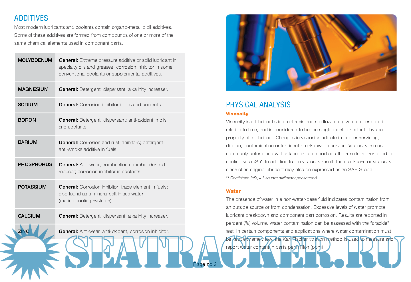 Year: 2015 Language: english Author: None Genre: Reference book Format: PDF Quality: Scanned pages + text layer Pages count: 15 Description: Oil analysis is an integral part of the maintenance plan for marine main engines, Aux machinery, equipment, refrigeration systems, processing and Copt plants, etc.. Any piece of equipment that has a lubricating system is a potential candidate for oil analysis.Oil analysis can Decrease unscheduled downtime,Increase overall component lifespan,Control lube consumption and oil disposal costs Assist product selection, comparison and verification,It Also Identify and measure lube contamination along with component wear for targeted corrective action Reduce in-service failures and field repairs and Establish proper lubricant service intervals,Which in turn Improve reliability, product quality and productivity Improve cost control for equipment, labor and materials.Eliminate needless inspections or repairs and Control spares and replacement costs