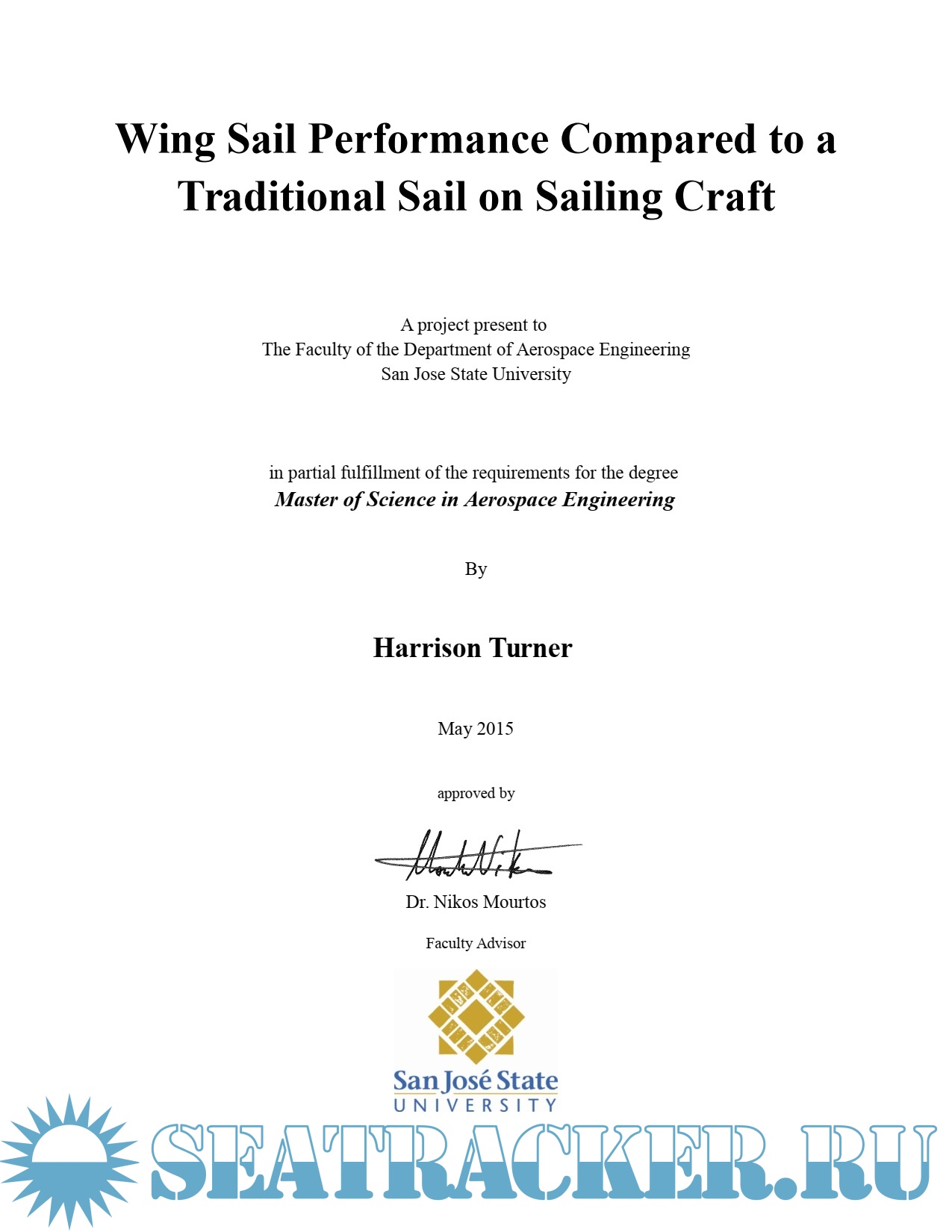 Year: 2015 Language: english Author: Turner H. Genre: Research papers Publisher: San Jose State University Format: PDF Quality: Scanned pages Pages count: 49 Description: In the history of sailing, specifically the America’s Cup, the development of new technologies and methods for making a boat go faster have led to leaps in the field that have resonated throughout the industry and beyond. One such innovation was that of a wing sail in place of the traditional fabric sail. The recent America’s Cup matches have shown that at high wind speeds and in large applications, the wing sail is much more efficient and capable of producing higher boat speeds than that of a traditional sail. It is worth investigating whether or not these principles hold true for small sailboats at relatively low wind speeds. In this paper, it is shown through theoretical modeling using Computational Fluid Dynamics (CFD) as well as a practical experimentation using a small sailboat that the wing sail performs at least similar and most of the time better than the traditional sail for the given parameters. The results of this paper prove that the application of wing sails can be used for smaller boats as well as larger boats as was previously known. These results also show that for any use of sailing methodologies, a wing sail can be used instead of a traditional sail for greater performance