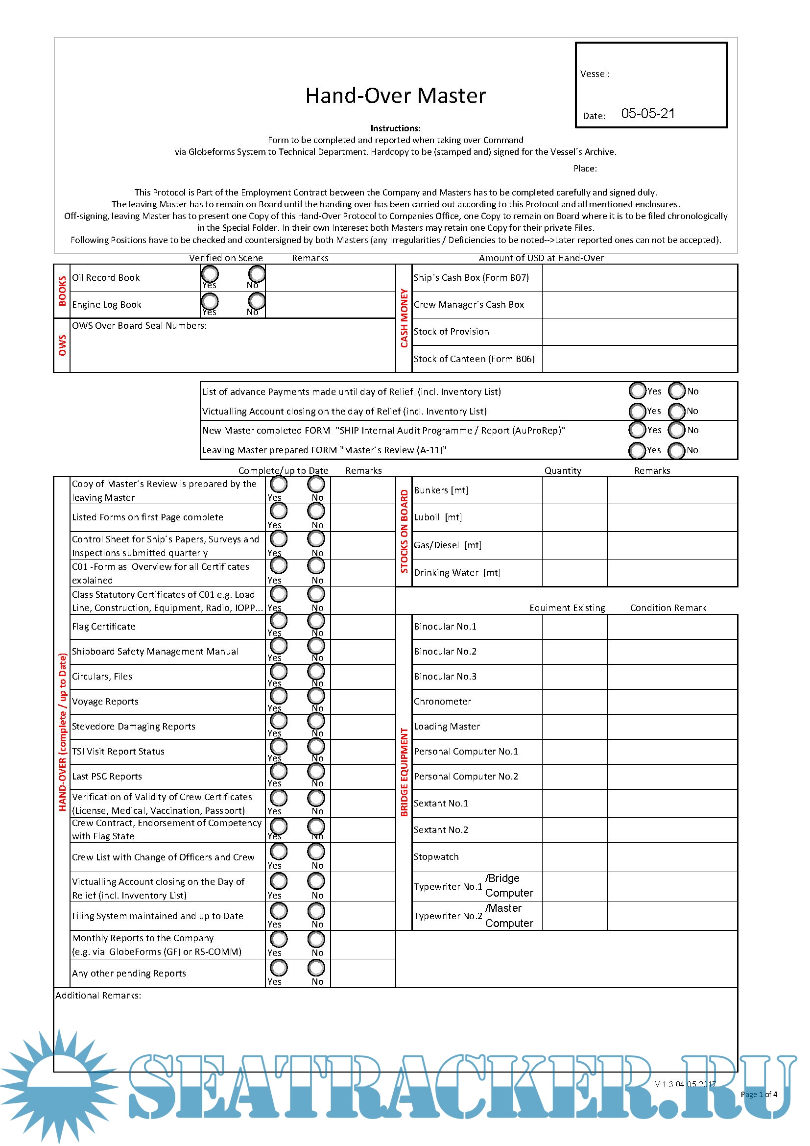 Lots of sample forms are provided with GlobeForms programm for "SMS/PMS/ISM Management System" of some shipping company named "Blumenthal"