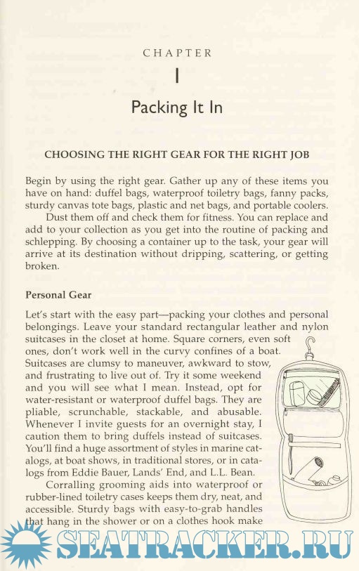 He has been rubbing his hands with glee because the boat is fi- nally going in the water. He's adventure bent. You're scared. He has more plans for you than you want. How on earth are you ever going to keep this boating thing under control? With all that boating stuff he's collecting, where are you going to fit your personal gear? How will you cope with doing without? How does one cope aboard a boat?