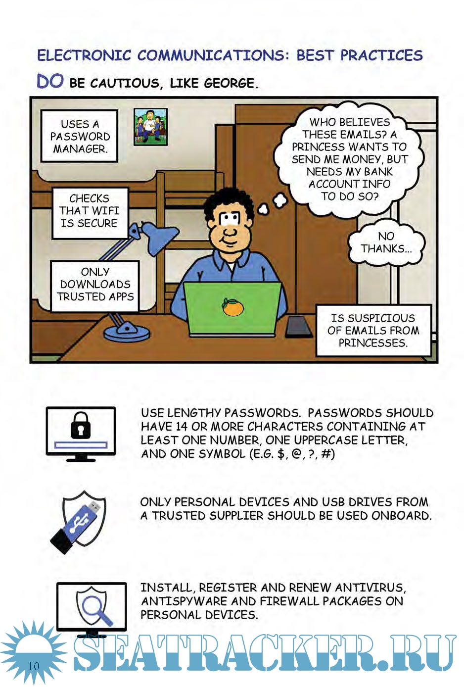 The primary audience of Cyber Awareness is the seafarer. There are common and basic best practices to maintain cyber security for seafarers’ personal devices as well as shipboard systems alike. Many of these common best practices apply at home as well as aboard ship.
