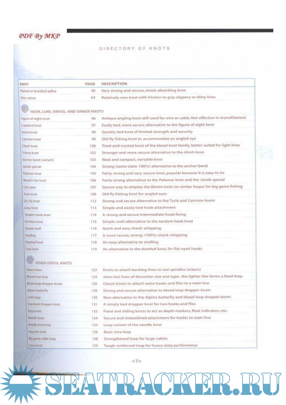 Year: 1999 Language: english Author: Budworth G. Genre: Practical guide Publisher: Lyons Press ISBN: 978-1558219076 Format: PDF Quality: Scanned pages Pages count: 120 Description: Contains easy-to-follow expert instruction for all fishermen on how to tie eighty important knots with clear color illustrations that guide you step-by-step.