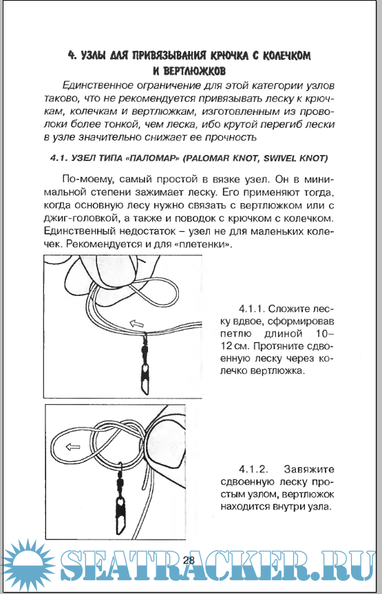 4. Узлы для привязывания крючка с колечком и вертлюжков