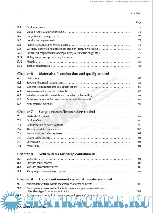 Year: 2016 Language: english Author: IMO Genre: Convention (rules) Publisher: IMO Edition: 2nd ISBN: 978-92-801-1631-1 Format: PDF Quality: eBook Pages count: 195 Description: The new 2016 edition of the IGC Code incorporates the amendments adopted by the MSC at its ninety-third session (May 2014) by resolution MSC.370(93). These amendments, which entered into force on 1 January 2016, consist of a complete replacement text of the IGC Code.Unless expressly provided otherwise, the requirements of the IGC Code, as amended by resolution MSC.370(93), apply to ships whose keels are laid, or which are at a similar stage of construction, on or after 1 July 2016.For ships constructed on or after 1 July 1986 and before 1 July 2016, unless expressly provided otherwise, the Administration shall ensure that such ships comply with the requirements which are applicable under the IGC Code, as adopted by resolution MSC.5(48) and as amended by resolutions MSC.17(58), MSC.30(61), MSC.32(63), MSC.59(67), MSC.103(73), MSC.177(79) and MSC.220(82). Additional info: The purpose of this Code is to provide an international standard for the safe carriage, by sea in bulk, of liquefied gases and certain other substances that are listed in chapter 19. Through consideration of the products carried, it prescribes the design and construction standards of the ships involved and the equipment they should carry to minimize the risk to the ship, its crew and the environment.