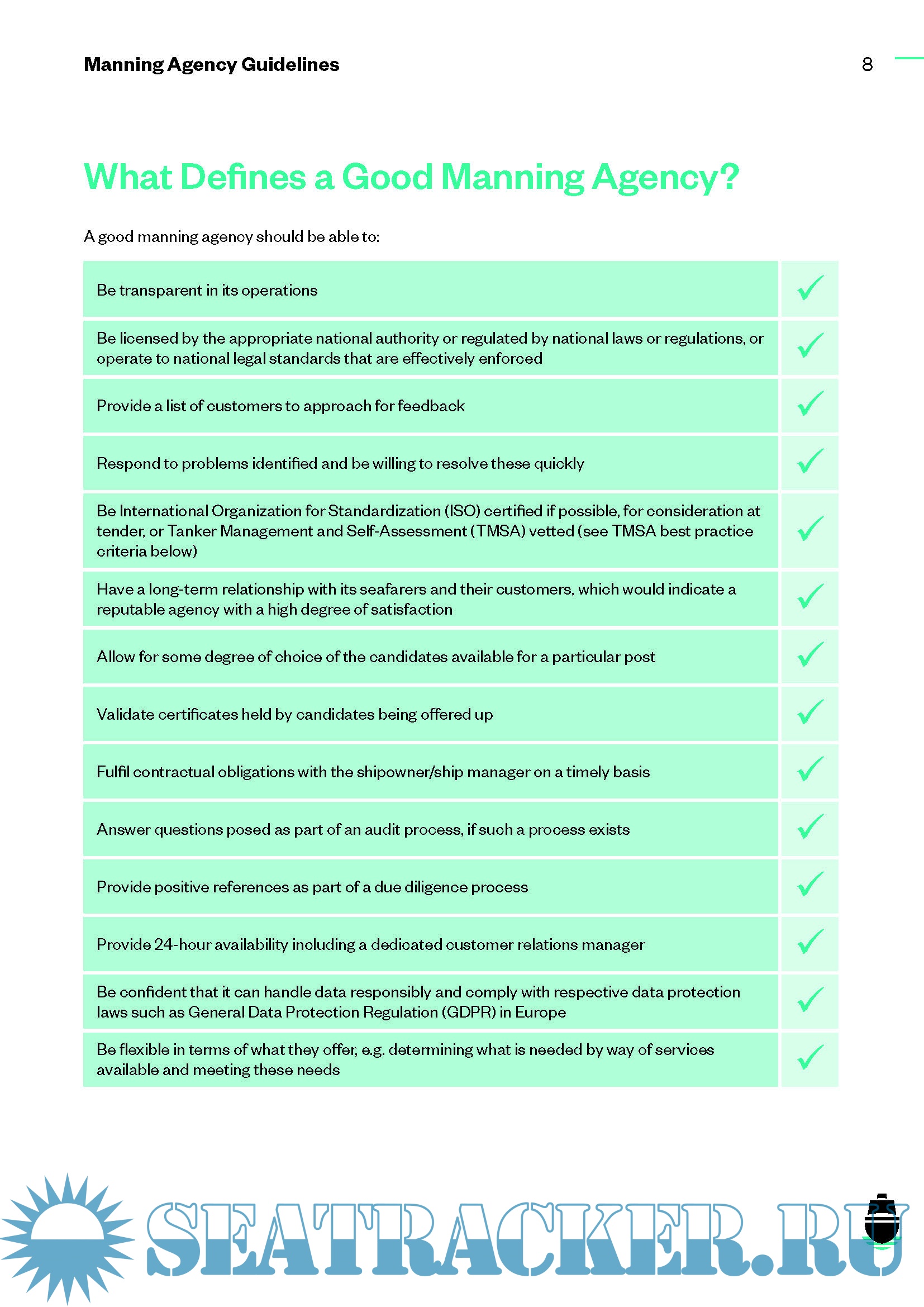 • Provide clear advice to companies on what to consider when identifying a manning agency;