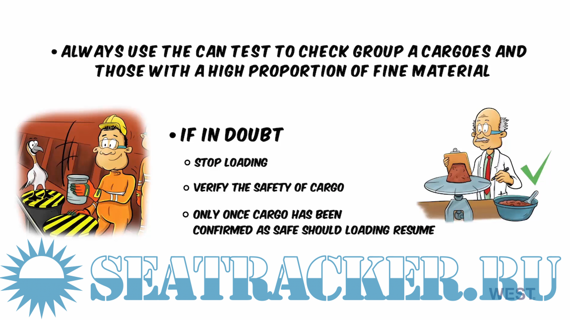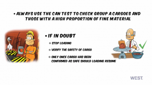 Although shippers are obligated to provide safe cargo, the Club continues to see incidents where this is not the case. Section 8.4 of the IMSBC Code details a test procedure that the Master and crew may use for determining the possibility of liquefaction – the Can Test. It is strongly recommended that dry bulk cargoes declared as Group A or which have a large proportion of fine material are subjected to regular can testing before and during loading.