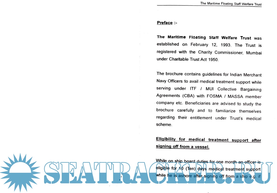 Description: The brochure contains guidelines for Indian Merchant Navy Officers to avail medical treatment support.