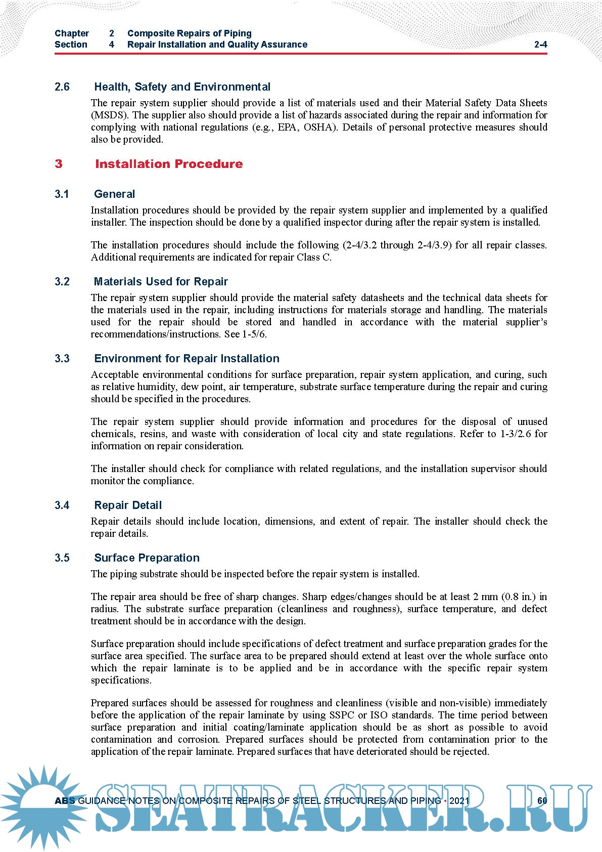 Description: This Chapter is applicable to the use of composite repairs on site-specific offshore units such as FPSOs and