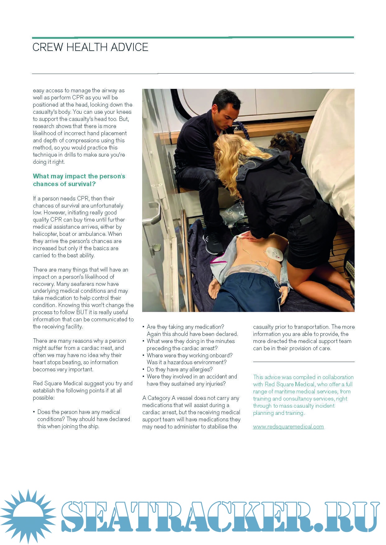 Crew Health Advice: Cardiopulmonary Resuscitation onboard a ship