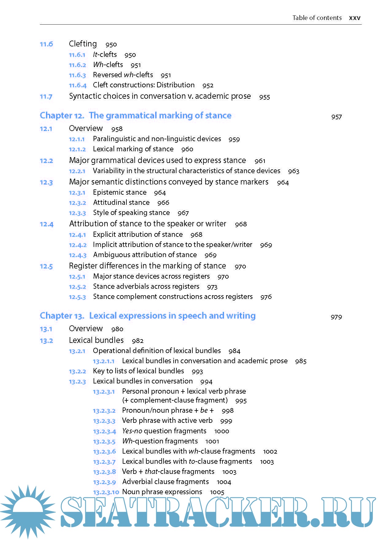 Description: The completely redesigned Grammar of Spoken and Written English is a comprehensive corpus-based reference grammar. GSWE describes the structural characteristics of grammatical constructions in English, as do other reference grammars. But GSWE is unique in that it gives equal attention to describing the patterns of language use for each grammatical feature, based on empirical analyses of grammatical patterns in a 40-million-word corpus of spoken and written registers.