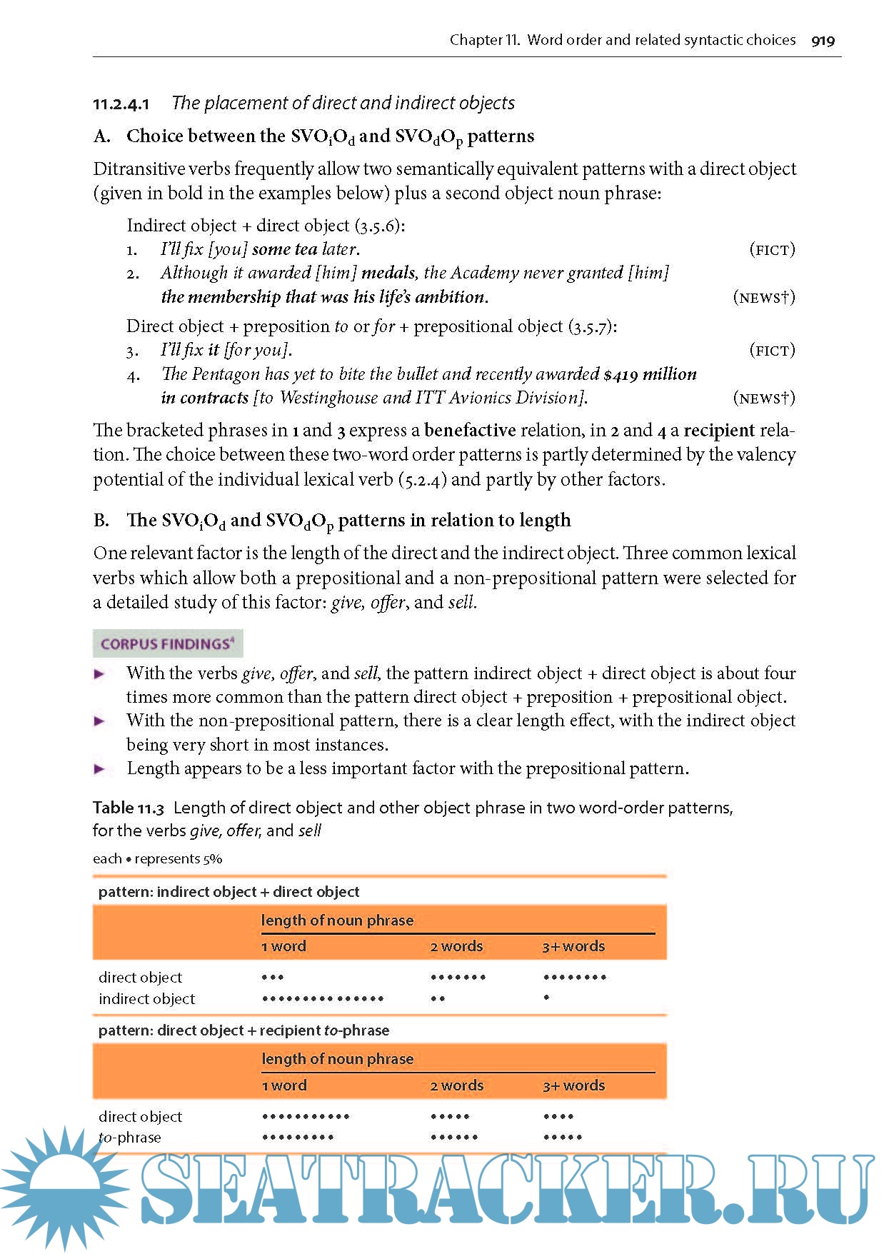 Grammar-in-use is characterized by three inter-related kinds of information: frequency of grammatical features in spoken and written registers, frequencies of the most common lexico-grammatical patterns, and analysis of the discourse factors influencing choices among related grammatical features. GSWE includes over 350 tables and figures highlighting the results of corpus-based investigations. Throughout the book, authentic examples illustrate all research findings.