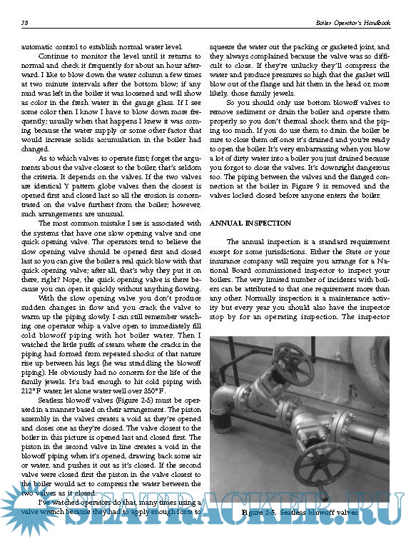 Year: 2004 Language: english Author: Kenneth E. Heselton Genre: Technical book Publisher: Fairmont Press Edition: 1st edition (October 19, 2004) ISBN: 0-88173-435-7 Format: PDF Quality: eBook Pages count: 413 Description: This book is written for the boiler operator, an operating engineer or stationary engineer by title, who has knowledge and experience with operating boilers but would like to know more and be able to operate his plant wisely. It is also simple enough to help a beginning operator learn the tricks of the trade by reading the book instead of learning the old-fashioned way (through experience) some of which can be very disagreeable. The book can also be used by the manager or superintendent who wants a reference to understand what his operators are talking about. It’s only fair, however, to warn a reader of this book that it assumes a certain amount of experience and knowledge already exists.