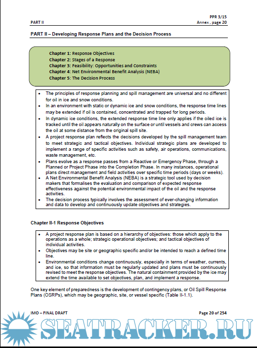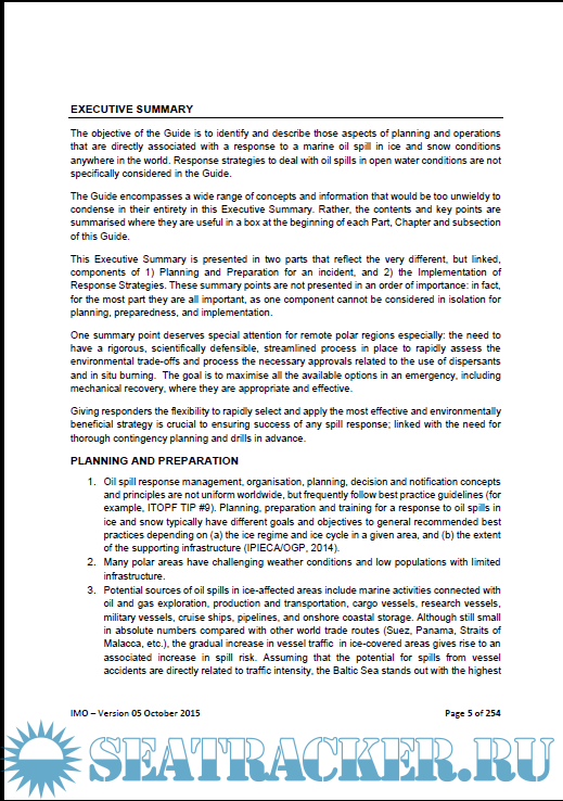 Description: The objective of the Guide is to identify and describe those aspects of planning and operations that are directly associated with a response to a marine oil spill in ice and snow conditions anywhere in the world. Response strategies to deal with oil spills in open water conditions are not specifically considered in the Guide.