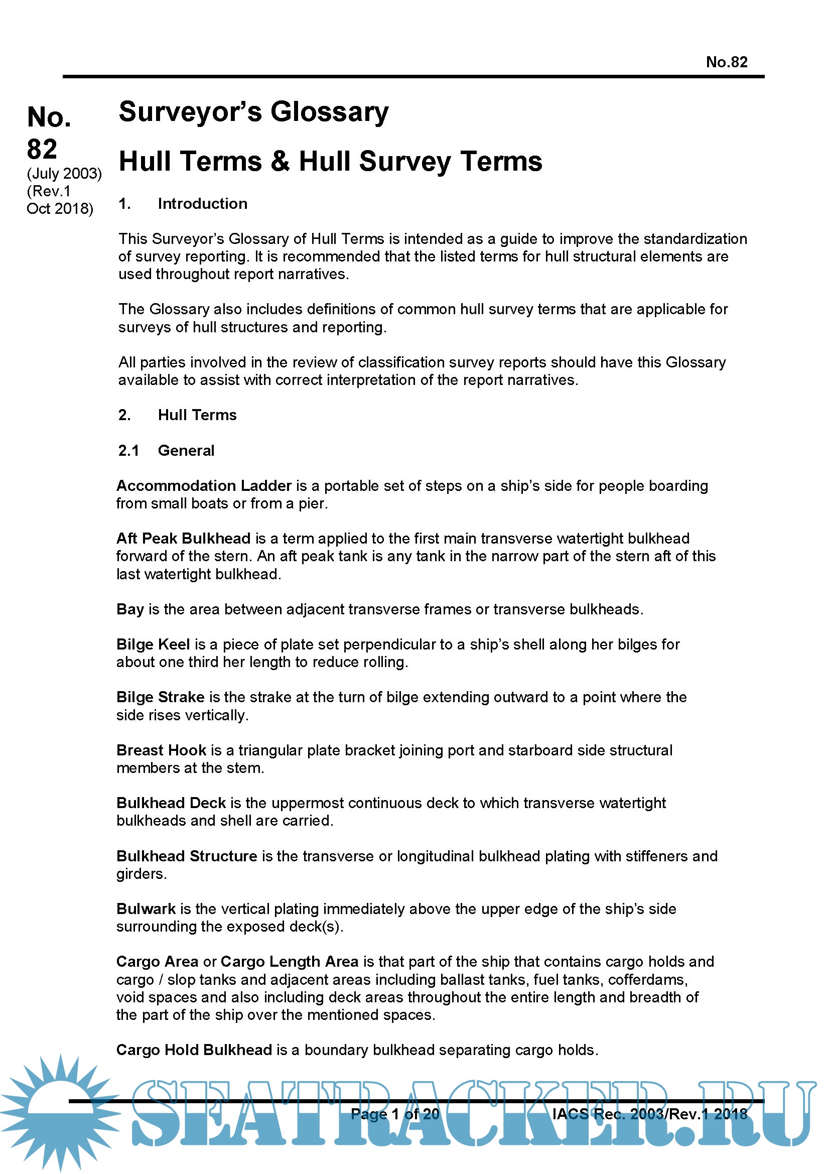 Description: This Surveyor’s Glossary of Hull Terms is intended as a guide to improve the standardization