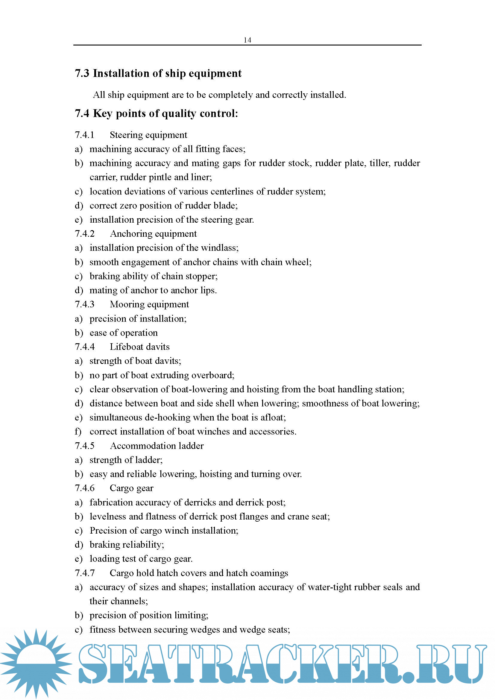 There documents are shipbuilding quality standard implemented by our yard presently. They consist of two parts like QUALITY CONTROL THROUGH PRODUCTION and CONSTRUCTION ACCURACY Taken as a main basis for the shipbuilding in our yard, this construction accuracy is made according to the shipbuilding quality standard in advanced shipbuilding nations, international conventions as well as rules and regulations of some well-known classification societies. For this purpose, we require: