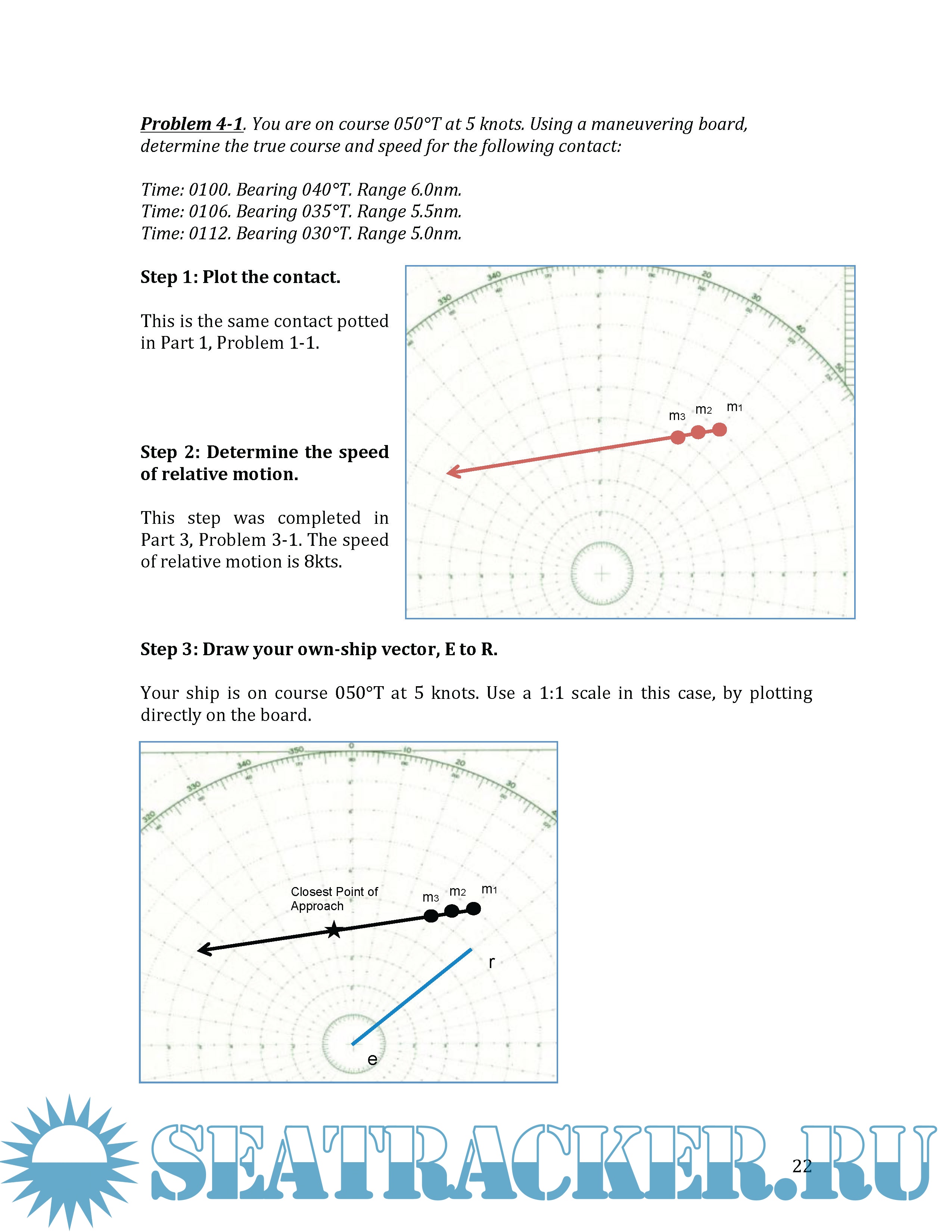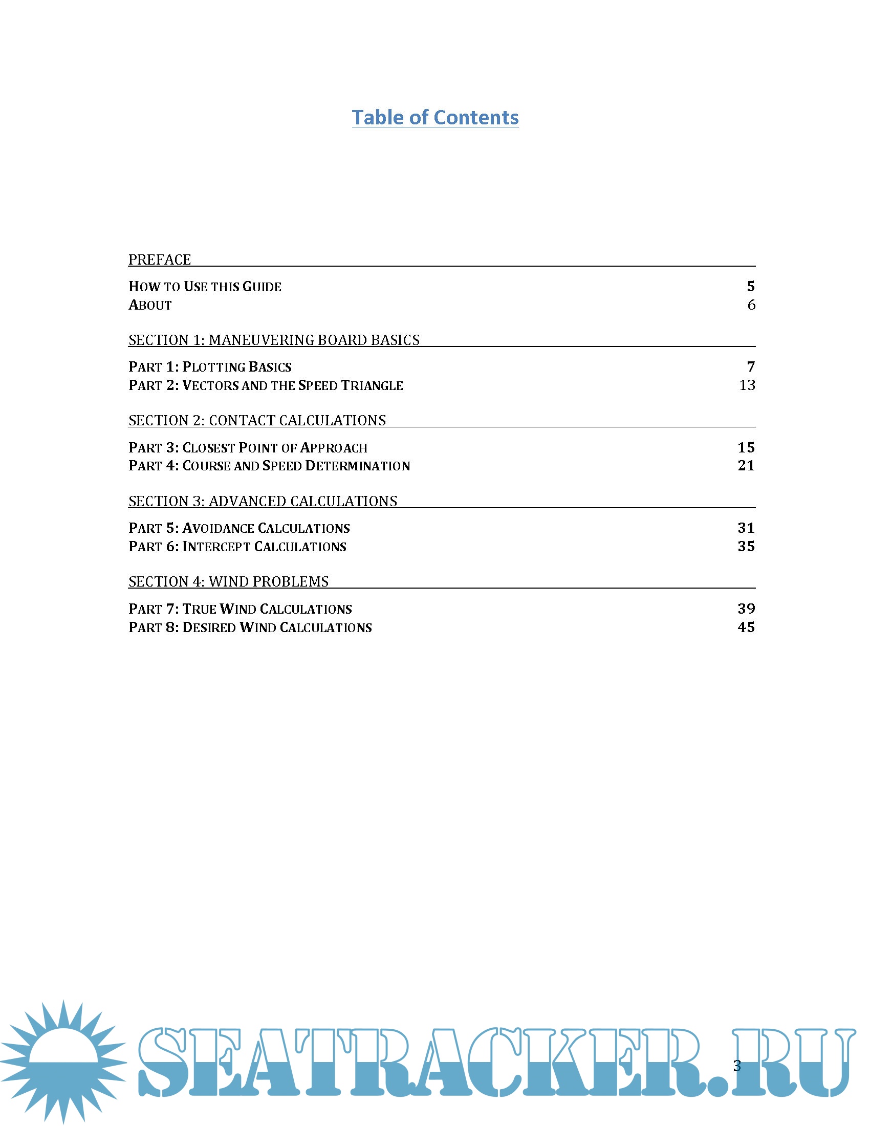 This guide is specifically written to dovetail with the online course “Fundamentals of the Maneuvering Board,” available at www.practicalnavigator.org. Many of the example problems solved in this guide are also solved in short videos located on the website.