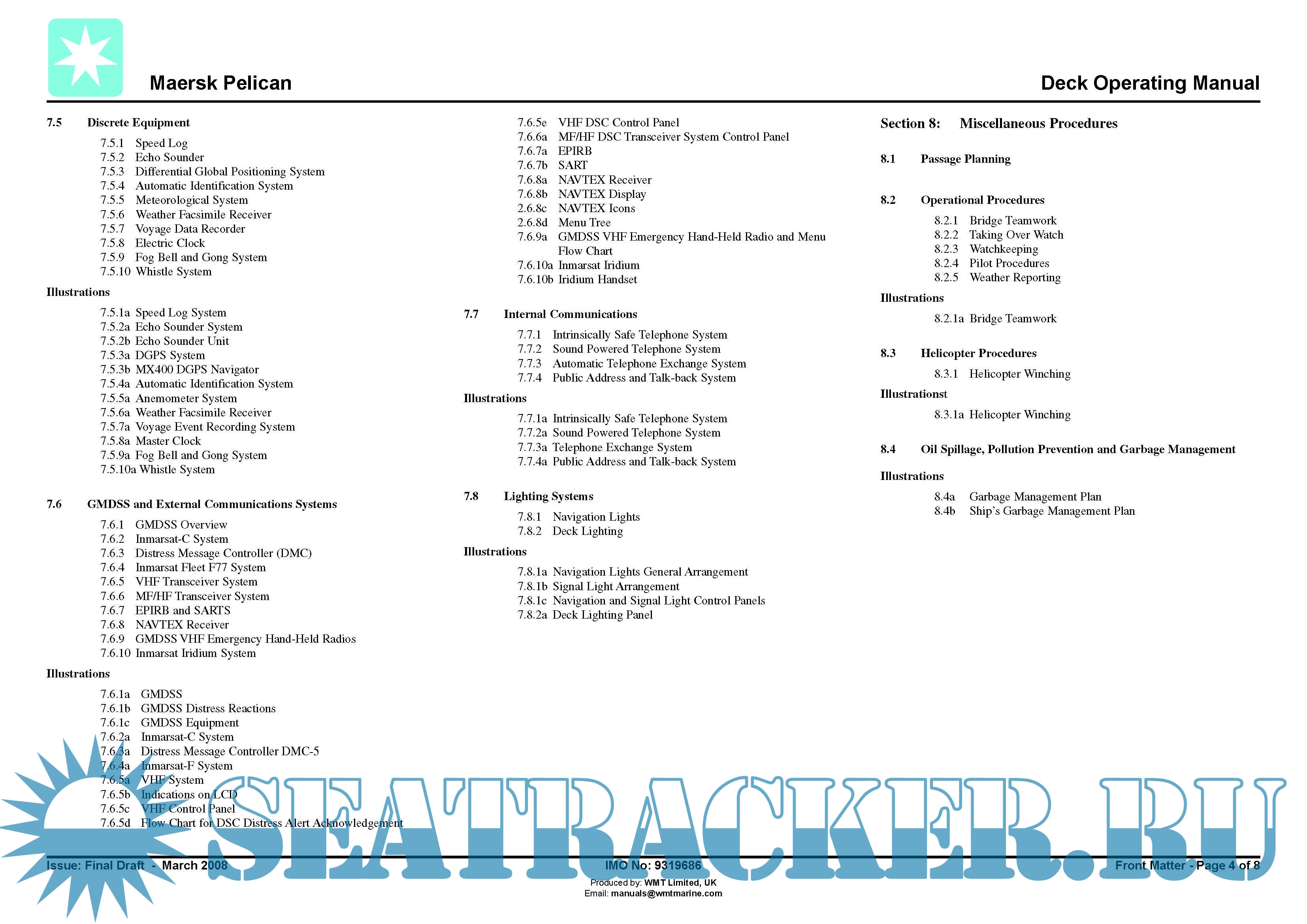 Year: 2008 Language: english Author: WMT Limited, UK Genre: Manual Format: PDF Quality: eBook Pages count: 436 Description: Maersk Pelican (now “Timberwolf”) (IMO: 9319686) is an Oil Products Tanker (OPT) built in 2008 by Dalian Shipbuilding Industry Group - Dalian, CHINA. Currently sailing under the flag of Islas Marshall. Its gross tonnage is 61724 tons.