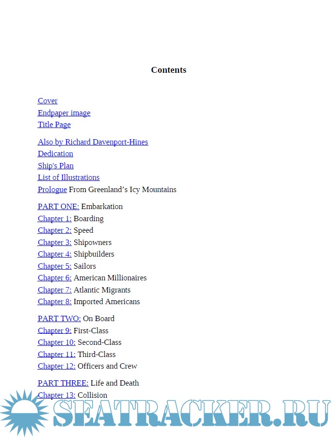 Year: 2012 Language: english Author: Richard Davenport-Hines Genre: History Publisher: HarperPress ISBN: 978-0-00-7 32164-3 Format: PDF Quality: eBook Pages count: 396 Description: Marking the centenary of the Titanic disaster, ‘Titanic Lives’ is an utterly compelling exploration of the lives of the passengers and crew on board the most famous ship in history. The RMS Titanic was built as one of the world's largest and most luxurious liners. A marine Ritz, it was a 45,000-tonne hotel of thin steel plates, travelling at a speed of 21 knots across the North Atlantic. On the night of 14 April 1912, midway through her maiden voyage, the seemingly unsinkable ship hit an iceberg, sustaining a 300-feet gash as six compartments were wrenched open to the sea. In little over two hours, the palatial Titanic nose-dived to the bottom of the ocean. Over 1,500 people perished in the freezing waters. Who were the people who by a cruel twist of fate happened to be travelling on the ship? In this original and timely book, Richard Davenport-Hines views the great liner as a paradigm of Edwardian society. At the bottom of the ship was the steerage class, filled with emigrants hoping for a better life in the New World. Above them were hundreds of second-class passengers buoyed up by their prosperous respectability. On the upper decks were the hereditary rich and those of inconceivable wealth – Americans like John Jacob Astor IV, who was found with £2000 and $4000 in sodden notes in his pockets. Bringing together over 2,000 passengers and crew from every class and every continent, ‘Titanic Lives’ tells their stories, re-creating the complexities, disparities and tensions of life one hundred years ago.