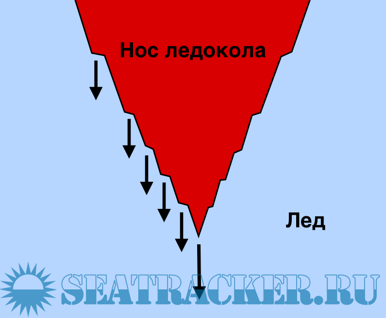 Но и это еще не все. Как известно, современные ледоколы пробивают путь во льдах методом "навала". То есть они как бы заезжают на лед носом и затем продавливают его вниз собственной массой.