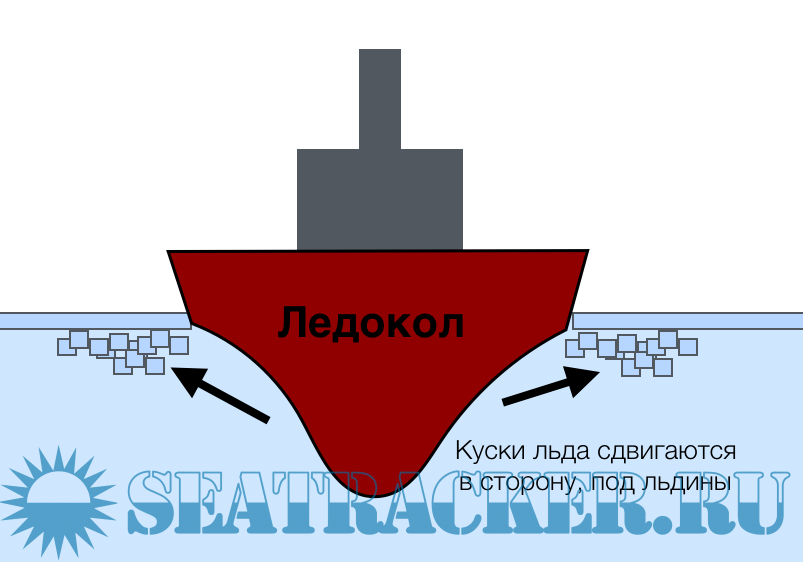 Часть сломанного льда уходит под днище судна, прилипает к нему и затрудняет движение. Это требует еще больше дополнительных мощностей