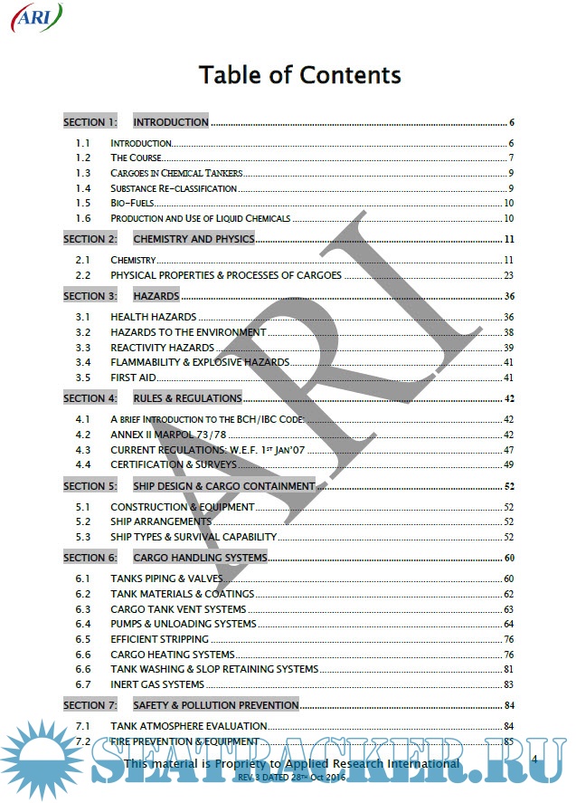 Description: Training Course handout for Advanced Training for Chemical Tanker Cargo (CHEMCO) Operations.