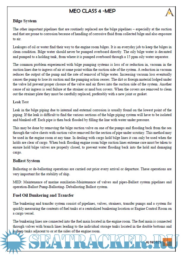 Year: 20xx Language: english Author: AJ Notes Format: PDF Quality: eBook Pages count: 162 Description: Marine Repair at Operational Level (MROL) Function 6 MEO Class 4 Orals