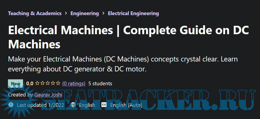 Year: 2022 Language: english Genre: Udemy Video Training Course Playtime: 4.5 Hours Quality: WEBRip Format: MP4 Video: 1280x720 Audio: 127kbps/48.0 kHz Description: Looking to fix your electric machines basics? Want to understand DC machines crystal clear and in the easiest language? If yes, then this course is for you. By the end of this course, your DC machines concepts will be clearer to you than others. You'll not only understand the concepts but, you'll master the DC machines i.e. DC Generator & DC Motor both. Understanding DC machines is very important. This creates the base for other electrical machines as well like Transformer or Induction motors, etc. This course mainly focuses in clearing the concepts. Many of the books are exam oriented and it can be difficult for many people to clear the concepts only using the books. This course is designed & organised in such a way that, it makes the understanding very easy, as we'll learn concepts step by step in the proper manner. Upon completion of this course, you'll have .. Working knowledge about DC Generator & Motor EMF Equation (for generator) & Back EMF (for motor) Complete understanding of Armature reaction, Clear understanding of commutation process Types of DC Generator & Motor and their characteristics Speed control methods of DC Motor Starters & Braking methods Losses in DC machines, etc Who this course is for ? Electrical Diploma Students BE or B-tech Students (Electrical Engineering) ME or M-tech students Students preparing for different exams (GATE, State Utility, etc) Teachers Electrical/Machines enthusiast Who this course is for: Diploma students Electrical Engineering Students ME or M-tech students