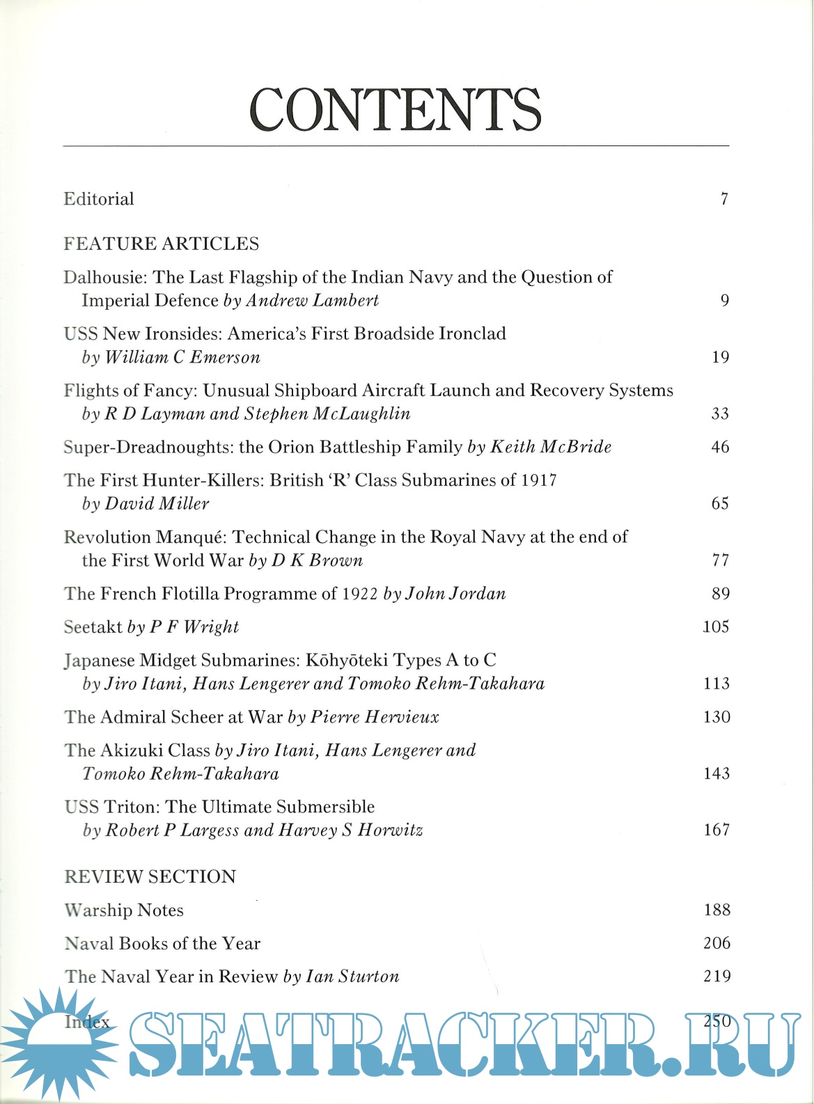 Description: This annual publication includes a wide range of feature articles devoted to the design, development and service history of the world's fighting ships.