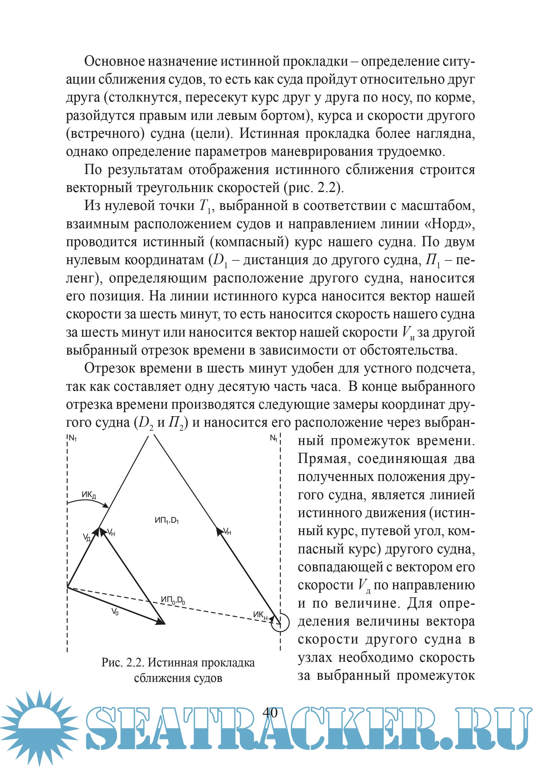 Значение некоторых терминов и сокращений Введение Раздел 1. Общие положения 1.1. Задача предотвращения столкновений судов 1.1.1. Основные проблемы и причины столкновений 1.1.2. Статистика столкновений 1.1.3. История создания Правил предупреждения расхождения судов в море 1.2. Мероприятия и средства, используемые для предотвращения столкновений 1.2.1. Общие требования к вахте 1.2.2. Средства управления движением судов 1.2.3. Средства отображения процесса расхождения 1.3. Нормативная база 1.3.1. Международные документы 1.3.2. Национальные требования 1.3.3. Инструкции судовладельцев Контрольные вопросы Раздел 2. Отображение процесса сближения судов 2.1. Радиолокационный планшет 2.2. Прокладка 2.2.1. Отображение истинного сближения судов (истинная прокладка) 2.2.2. Отображение относительного движения судов (относительная прокладка) 2.3. Векторный треугольник 2.4. Параметры сближения, маневрирования и контроля процесса расхождения 2.4.1. Определения 2.4.2. Маневрирование нашего судна изменением своего курса 2.4.3. Маневрирование нашего судна изменением своей скорости. Комбинированный маневр 2.4.4. Возвращение к прежним элементам движения 2.4.5. Расхождение с несколькими судами 2.4.6. Определение маневра другого судна 2.4.7. Учет маневренных элементов нашего судна 2.4.8. Глазомерное решение задач на планшете 2.4.9. Особенности ведения прокладки в условиях ходового мостика Контрольные вопросы Раздел 3. Особенности применения МППСС-72 3.1. Структура МППСС-72 3.1.1. Официальное название 3.1.2. Разделение на части, разделы, правила, пункты, подпункты 3.1.3. Краткое содержание частей 3.2. Организация наблюдения 3.2.1. Объекты наблюдения 3.2.2. Средства наблюдения 3.2.3. Состав и обязанности службы наблюдения 3.3. Опасность столкновения 3.3.1. Признаки опасного сближения 3.3.2. Основные параметры и факторы опасности столкновения 3.3.3. Другие параметры оценки опасности столкновения 3.3.4. Глазомерная оценка опасного сближения судов 3.3.5. Классификация других судов по степени их опасности 3.3.6. Принципы полной оценки опасности столкновения 3.4. Ситуации сближения, характер действий судов 3.4.1. Классификация 3.4.2. Взаимное положение судов 3.4.3. Статус судна 3.4.4. Ограниченная видимость 3.4.5. Безопасная скорость 3.4.6. Узкости 3.4.7. Общие требования 3.5. Особенности расхождения с судами, занятыми ловом рыбы, и с конвоями 3.5.1. Рыболовные суда 3.5.2. Конвои 3.6. Огни, сигналы, знаки 3.6.1. Огни и знаки 3.6.2. Сигналы 3.6.3. Судовые средства для подачи звуковых сигналов 3.7. Руководство по единому применению некоторых Правил МППСС-72 3.8. Приложения к МППСС-72 3.9. Точность определения параметров сближения 3.10. Документирование процесса расхождения 3.11. Количественные характеристики параметров расхождения 3.11.1. Экспертные методы 3.11.2. Вероятностные методы 3.11.3. Расчетные методы Контрольные вопросы Раздел 4. Технические средства, применяемые для предупреждения столкновений судов 4.1. Радиолокационная станция (РЛС) 4.1.1. Назначение 4.1.2. Применение РЛС для расхождения судов 4.2. Средство автоматической радиолокационной прокладки (САРП) 4.2.1. Назначение 4.2.2. Применение САРП для расхождения судов 4.3. Автоматическая идентификационная система (АИС) 4.3.1. Назначение 4.3.2. Применение АИС для предупреждения столкновений 4.4. Электронно-картографическая навигационно-информационная система (ЭКНИС) ECDIS – Electronic Chart Display and Information System 4.4.1. Назначение 4.4.2. Применение ЭКНИС для р