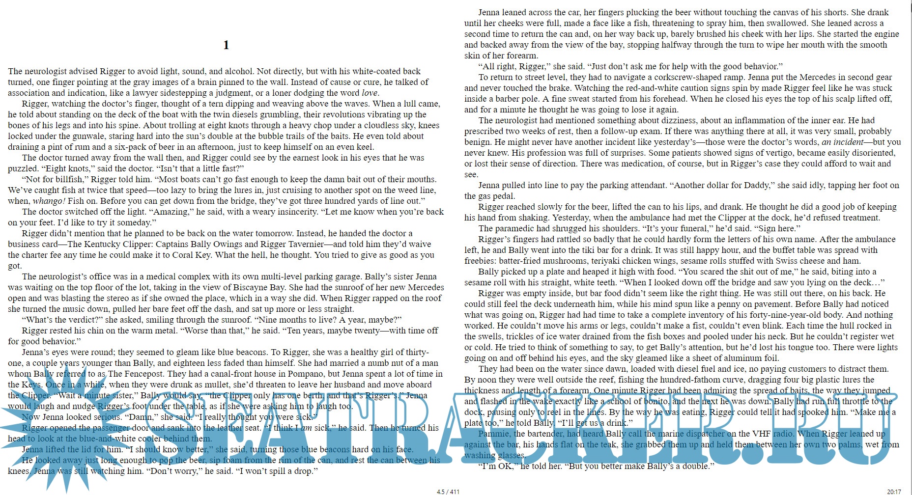 Charter captain Rigger Tavernier never imagined he could lose his bearings in the Florida Keys, until Jenna came along. A football star's bride from a rich family, she seemed to be out of his league. But after that first night with Jenna, Rigger would give everything and more to keep her. First, however, he’ll have to sift through the wreck of his first marriage and the death of an old friend.