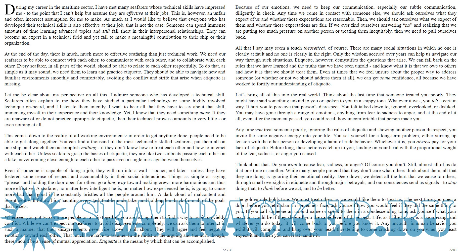 Description: Despite all of the technical prowess and aptitude that Dr Binay Kumar Singh sees and appreciates in the maritime sector, he also sees a distinct and urgent need for etiquette. He believes that, through etiquette, seafarers and other maritime professionals worldwide can collaborate more effectively, complementing each other's skills more efficiently. Read Basic Etiquette for Seafarers to get an in-depth look at this topic and how you can start to implement these concepts today.