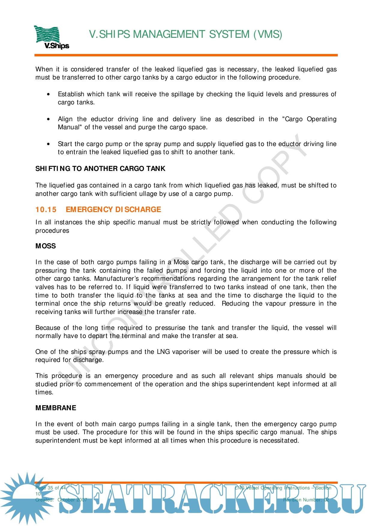 instructions etc. based on V Ships operating experience.