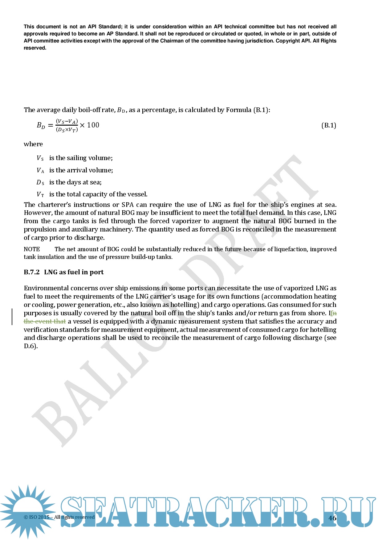Description: ISO 10976-15 (Modified), Refrigerated light hydrocarbon fluids – Measurement of cargoes on board marine LNG carriers