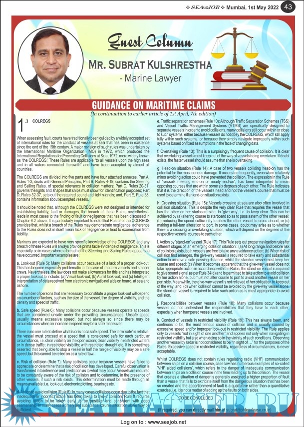Description: The Sea and Job magazine launched in May 2007, was the second venture of Sea Line Group succeeding 'seajob.net' bringing the much renowned essence to the Group, the Sea and Job Magazine quickly gained popularity, becoming the No. 1 Shipping Magazine that came to be widely circulated all over India. Sea and Job over the years has evolved as the most trusted, ethical, objective and read maritime publication that possesses a large database of subscribers from various verticals in the industry.The magazine provides informative and interesting articles covering not just the shipping world but also the world outside it.Sea and Job is also a medium for the shipping/ manning companies to advertise marine jobs and also to promote their organization by publicizing internal activities like seminars, sports events and parties.Some notable endeavors of the magazine include the Know Your Recruiter Column, the Sailing Episodes Column and the Marine Insights section. The consistent efforts and the dedication to provide extraordinary services to the industry has resulted in the magnifying popularity and patronage of Sea and Job.